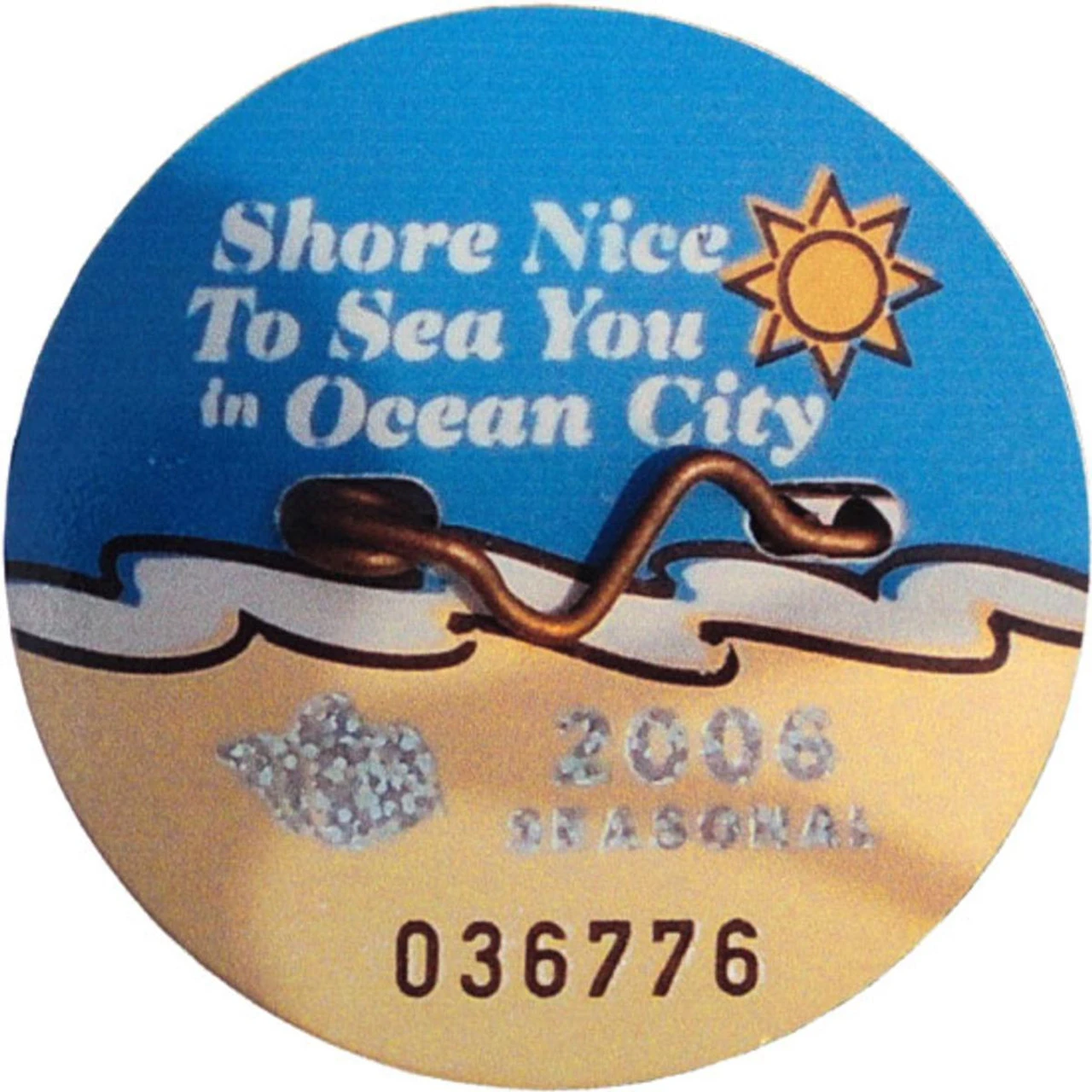 Shore Memories Ocean City NJ Beach Tag 2006 Photo Plaque is made from an actual photograph of the 2006 beach tag. The photograph is mounted on hdf wood hand cut into the shape of the image. Sealed with polyurethane, Shore Memories Ocean City NJ Beach Tag 2006 Photo Plaque is of the highest quality. Ocean City NJ Beach Tag 2006 Photo Plaque size: 5 1/4'' circle Keep your Ocean City NJ shore memories alive by hanging a Shore Memories Photo Plaque in your bedroom, kitchen, office, at home or work!Shore Memories Ocean City NJ Beach Tag 2006 Photo Plaque is made from an actual photograph of the 2006 beach tag. The photograph is mounted on hdf wood hand cut into the shape of the image. Sealed with polyurethane, Shore Memories Ocean City NJ Beach Tag 2006 Photo Plaque is of the highest quality. Ocean City NJ Beach Tag 2006 Photo Plaque size: 5 1/4'' circle Keep your Ocean City NJ shore memories alive by hanging a Shore Memories Photo Plaque in your bedroom, kitchen, office, at home or work!