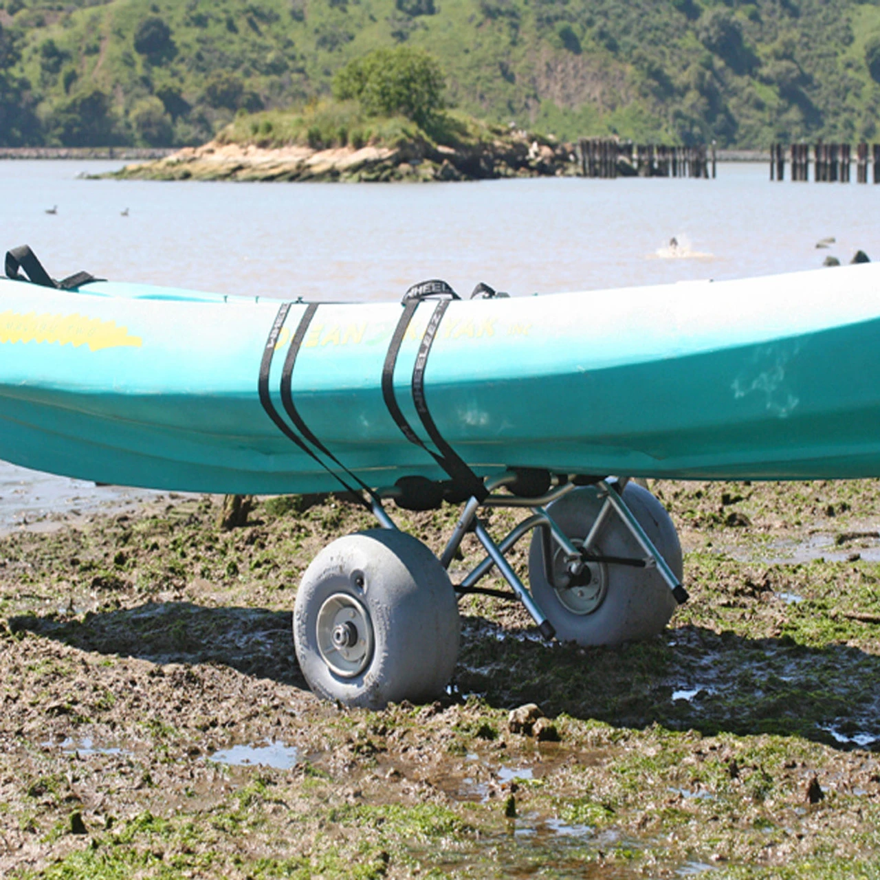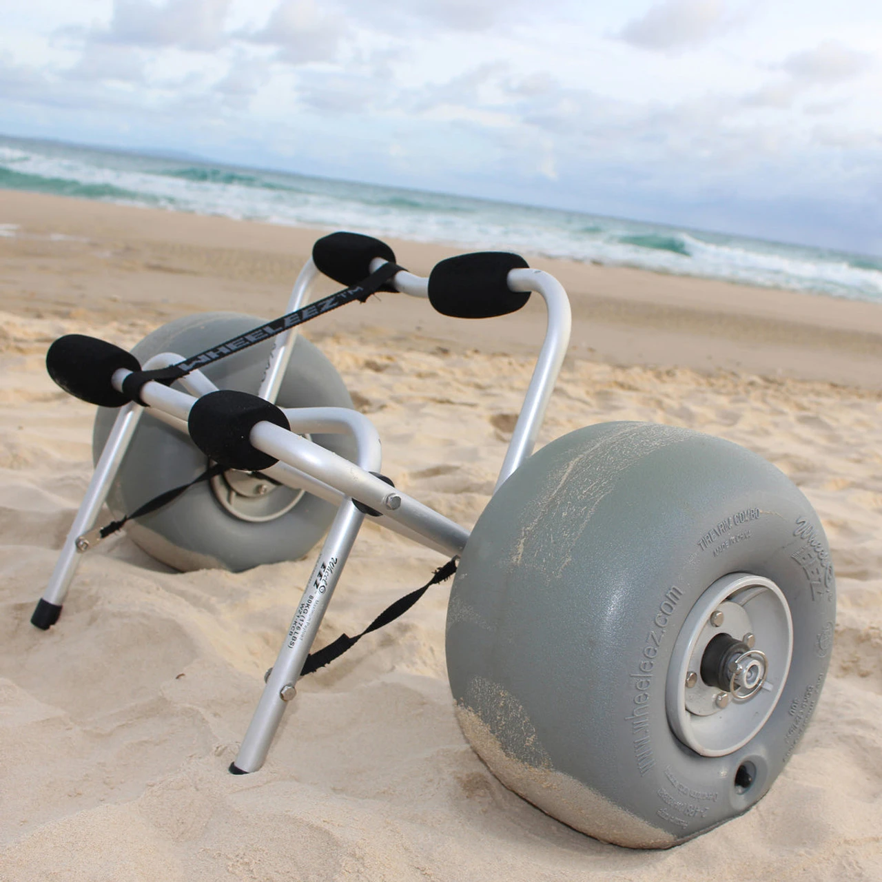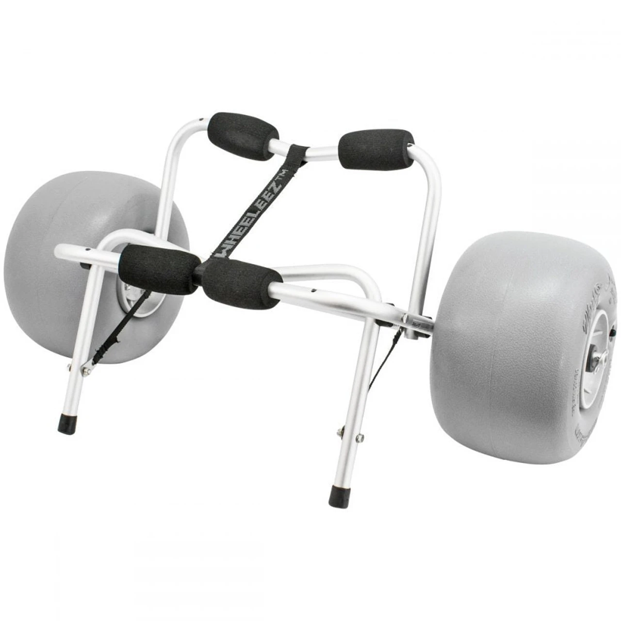 WheelEEZ® Kayak Cart Beach is equipped with 30 cm Polyurethane Beach Wheels to transport your canoe or kayak with ease over soft sand and other challenging surface terrains. Carries up to 80 kg (176 lbs). Strong marine grade anodized aluminum tubing (3 mm wall thickness) means it is built to last. Includes 2-tie down straps to secure your kayak to the cart. Wheel Size: 30 cm Polyurethane Wheel (WZ1-30UB) Wheel Type: Low-Pressure Balloon For Use On: Soft Sand And Other Challenging Terrain Wheel Dimensions: 30 x 18 cm (11.8 x 7") Maximum Payload: 80 kg (176 lbs) Width AT Axle: 87cm (34.5") 18" Crossbar Width Frame Dimensions Folded: 88.7 x 33 x 10 cm (35 x 13 x 4") Frame Material: Marine Grade Anodized Aluminum Hardware: Stainless Steel Includes 1 pair of 4 m (13"²) Tie Down Straps